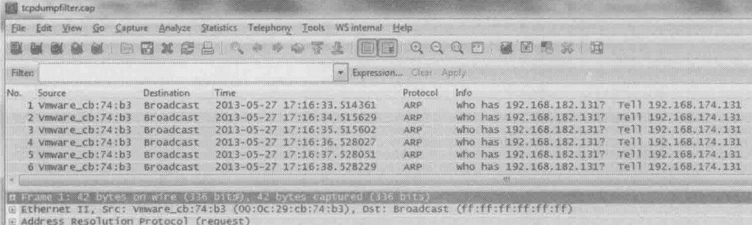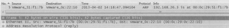B终于收到了A的ping回复,从MAC地址 00:0c:29:0c:22:10 可以看出,这个包是从A直接过来的,而不是通过默认网关的转发