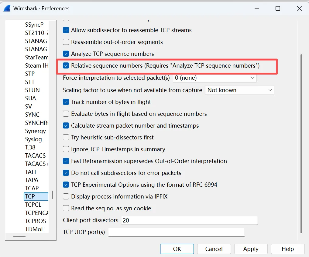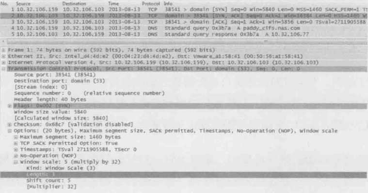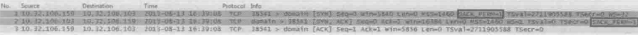 因为本案例中存在大量不必要的重传,而且DupAck包中也没有SACK信息,已经足以说明SACK没有启用。作者决定先不限制发送窗口,把SACK打开再说。是否启用SACK是在TCP三次握手时协商决定的,如下图中方框内的参数所示。只要双方中有一方没有发”SACK_PERM=1“,那该连接建立之后就不会用到SACK