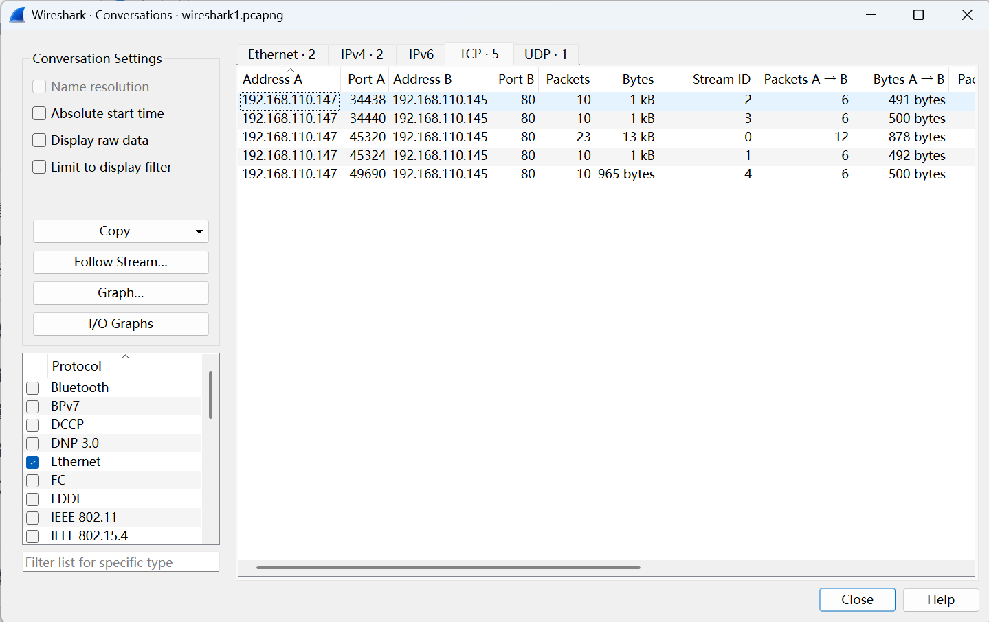 ”conv,xxx“就可以做到,其中xxx可以是tcp、udp、eth或者ip(见下图)