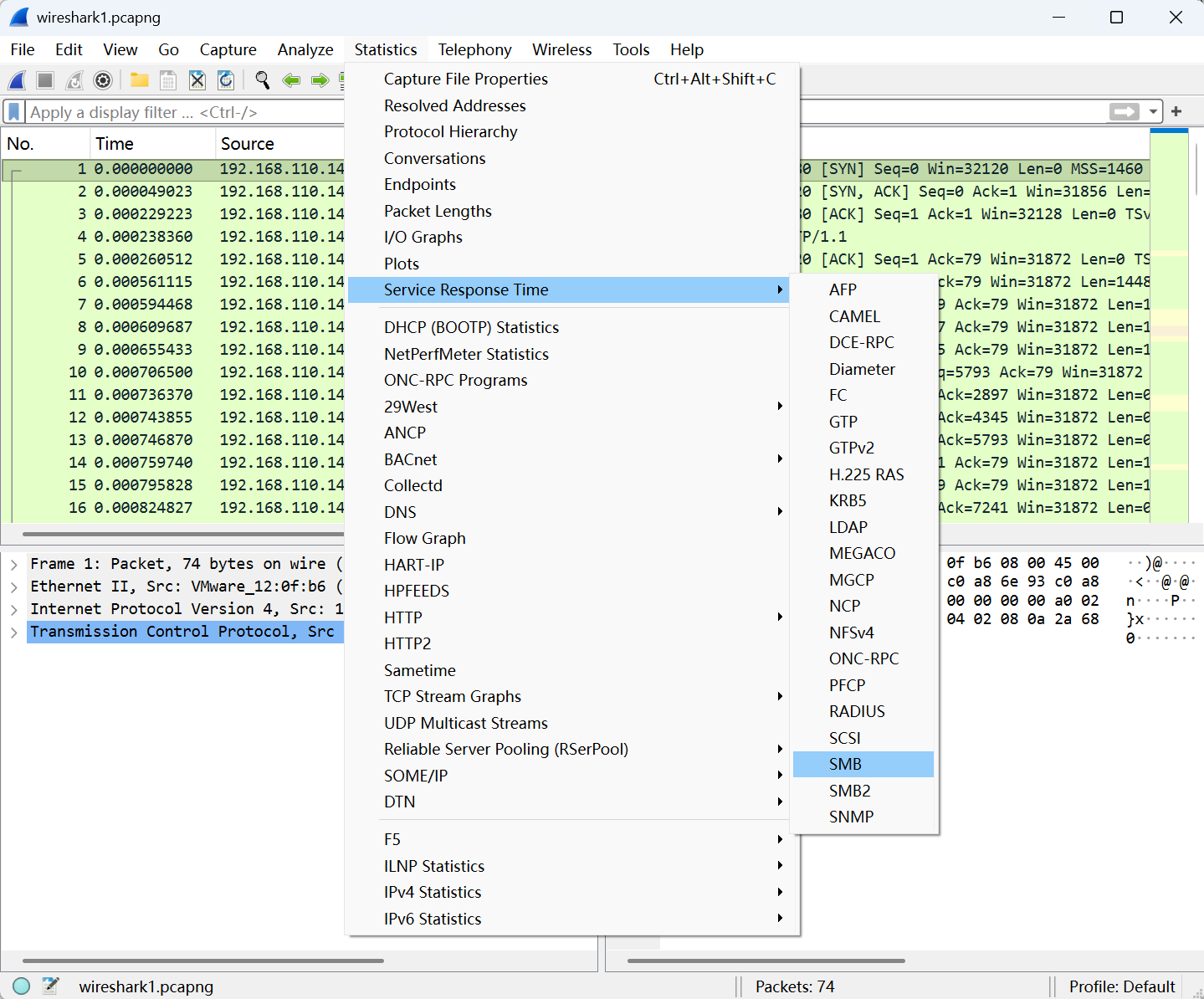 用Wireshark打开网络包之后,作者习惯性地试了”性能问题三板斧“