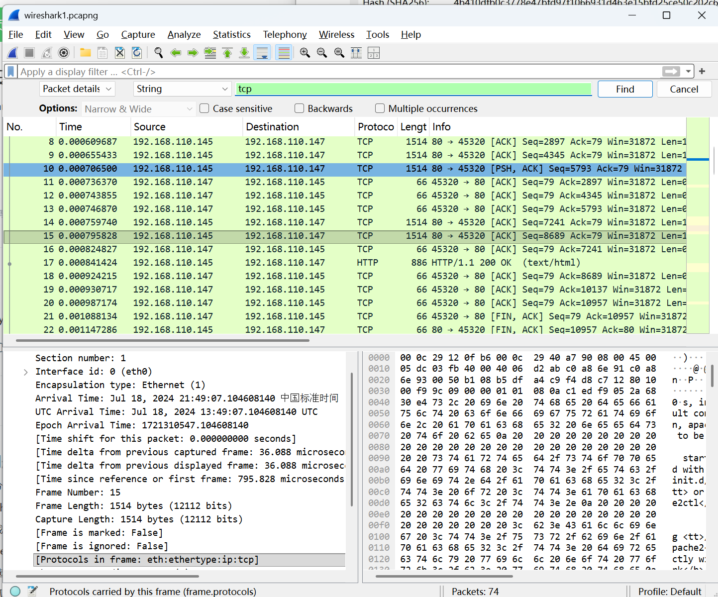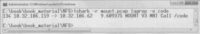 我希望搜索mount.pcap中含有”code“字符串的一个包,就可以用qgrep找出来