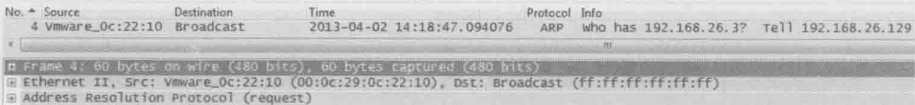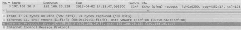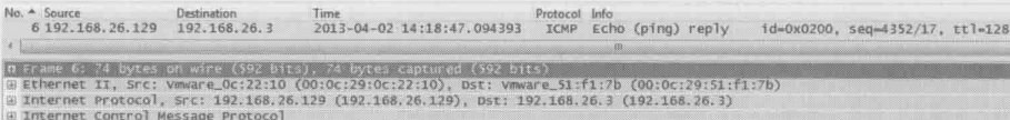 B发出ping包,指定Destination IP为A,即192.168.26.129,但Destination MAC却是默认网关的 00:50:56:e7:2f:88,这表名B希望默认网关把包转发给A