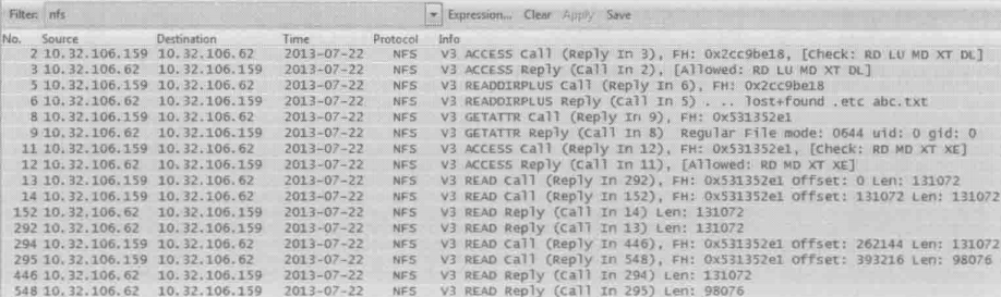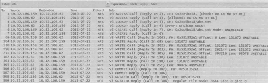 b.获取Service Response Time则要视不同协议而定,比如NFS协议可以用下图中的命令