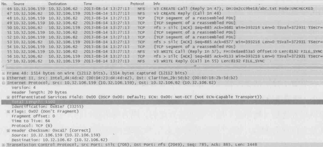 分析到这里,可以肯定重传的根本原因就是接收方自身地乱序,而网络设备和Isilon都被冤枉了。这不但颠覆了作者之前地分析结果,而且难以说服现场工程师和客户。还好最后查到一个重要信息,原来那7台客户端都是用一张ghost盘安装的,客户终于让步,答应明天新装7台客户端供作者测试。第二天作者又一次启动测试脚本,这一次每台的读性能都能达到100MB/s,大大超过了客户80MB/s的预期
