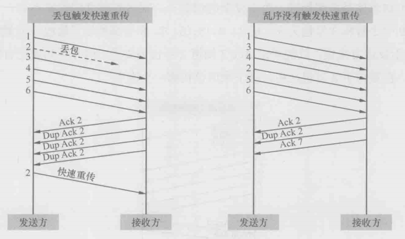 举个更通俗的例子,当序号为1、2、3、4、5、6的一系列包到达接收方时,如果次序乱成了2、1、4、3、6、5,是不会触发快速重传的但如果乱成2、3、4、5、6、1,就会导致重传
