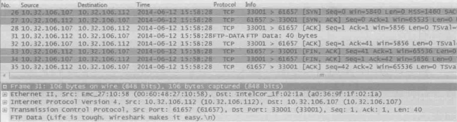 这里因为没有相同的电脑配置条件,所以无法模拟书上测试连接的过程,只能演示如何抓包