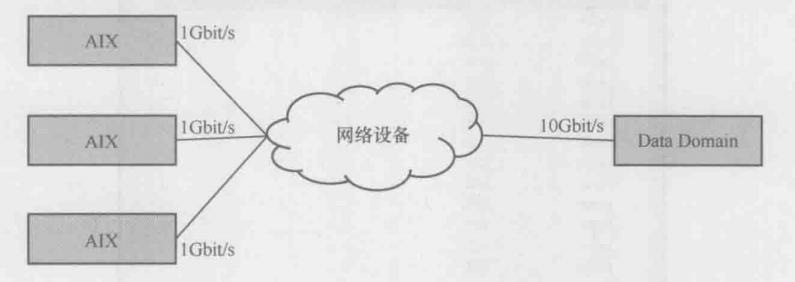 大概了解的症状是多台AIX同时往Data Domain读写数据(如下图所示)。写的时候性能很好,能超过90MB/s;但读的时候性能却很差,在20MB以下