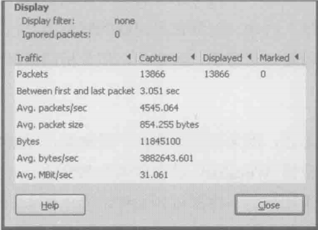 1.单机Statictics–>Capture File Properties。从Avg.MBit/sec看到,那段时间的流量不高,所以该存储的负担似乎并不重