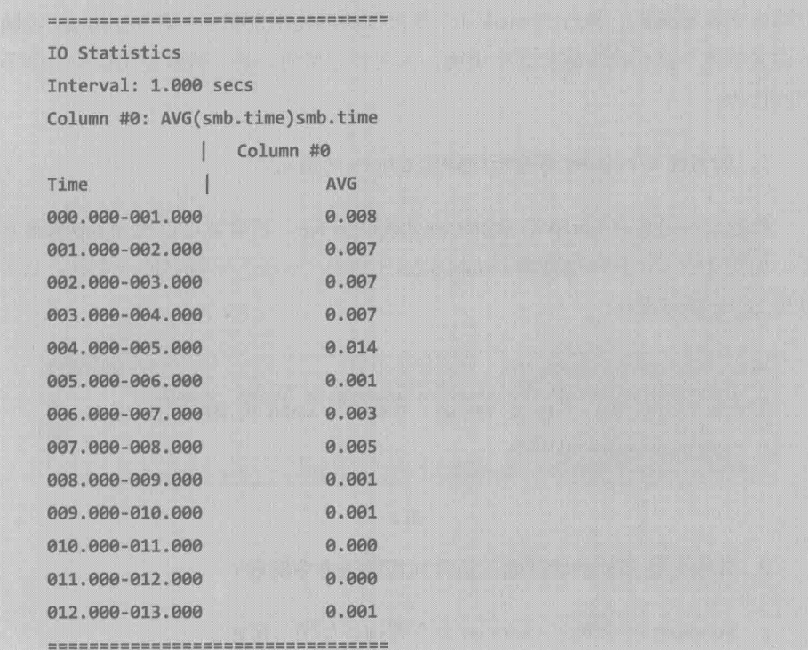 3.tshark输出的分析文本大多可以直接写入分析报告中,而Wireshark生成不了这样的报告。比如说,我想统计每一秒钟里CIFS操作的Service Response Time,那只要执行以下命令就可以了,如下图所示
