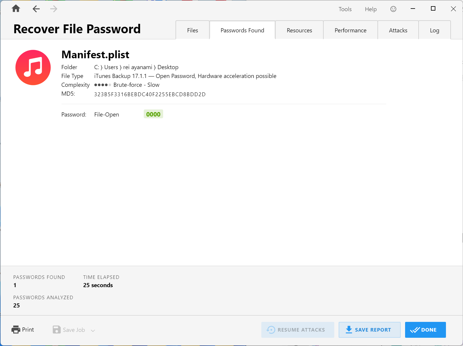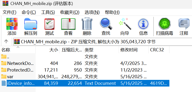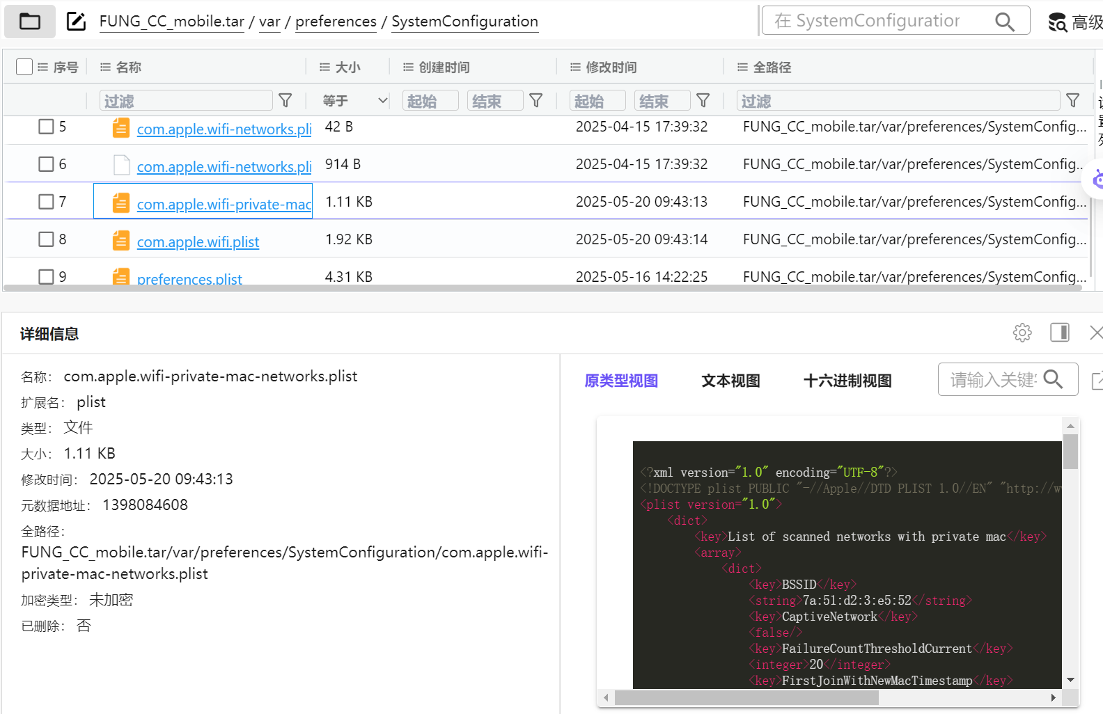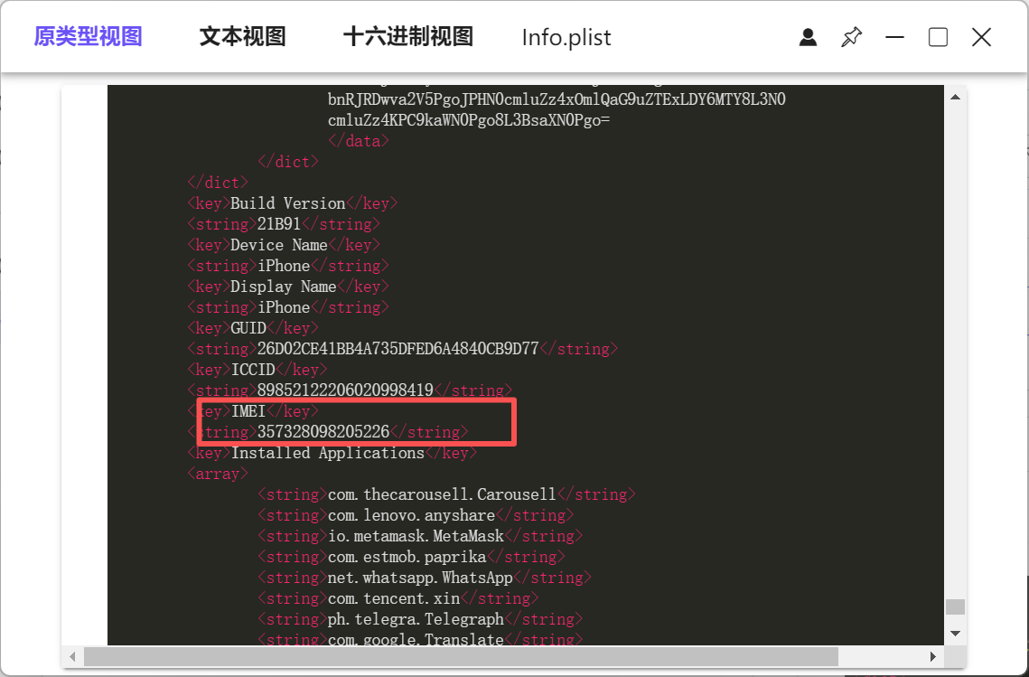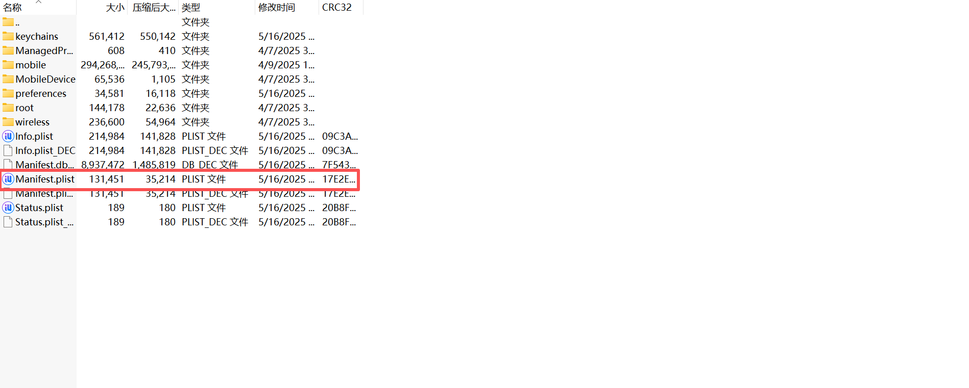 找到苹果手机中的Manifest.plist,这是苹果手机统一的核心数据文件,将其拖入passwarekit爆破就好了