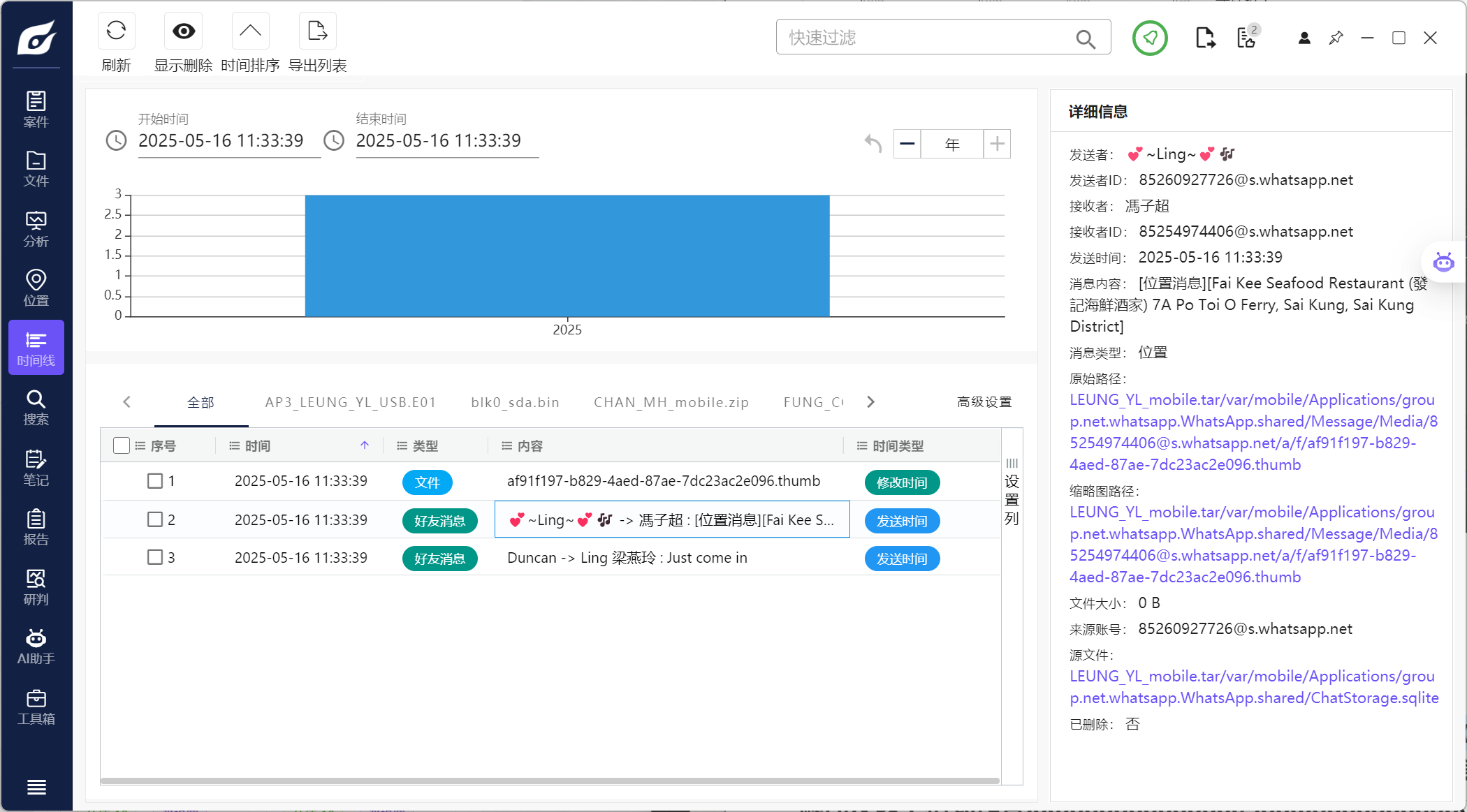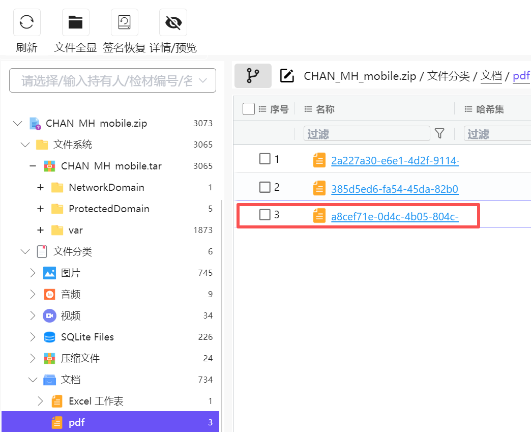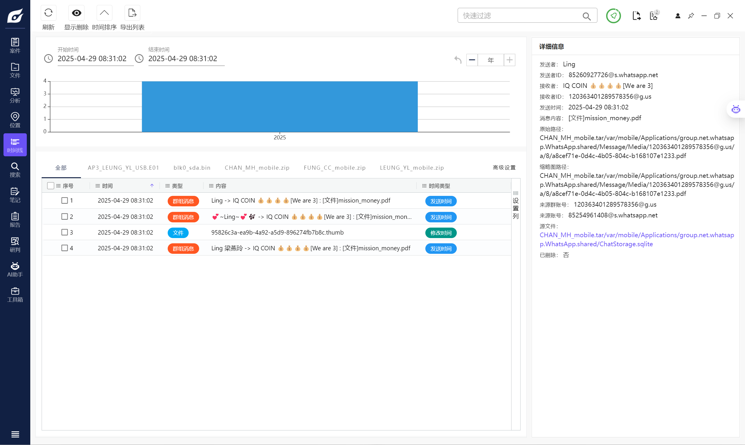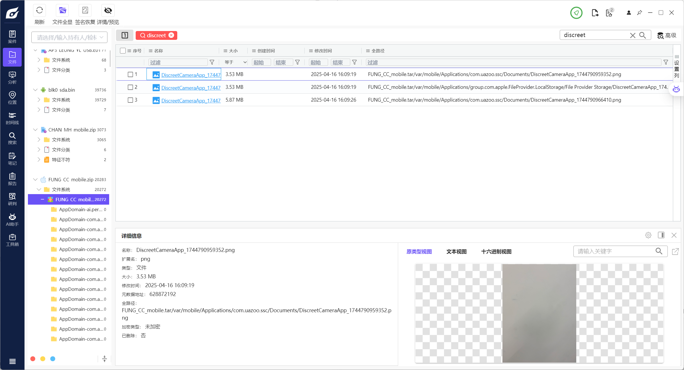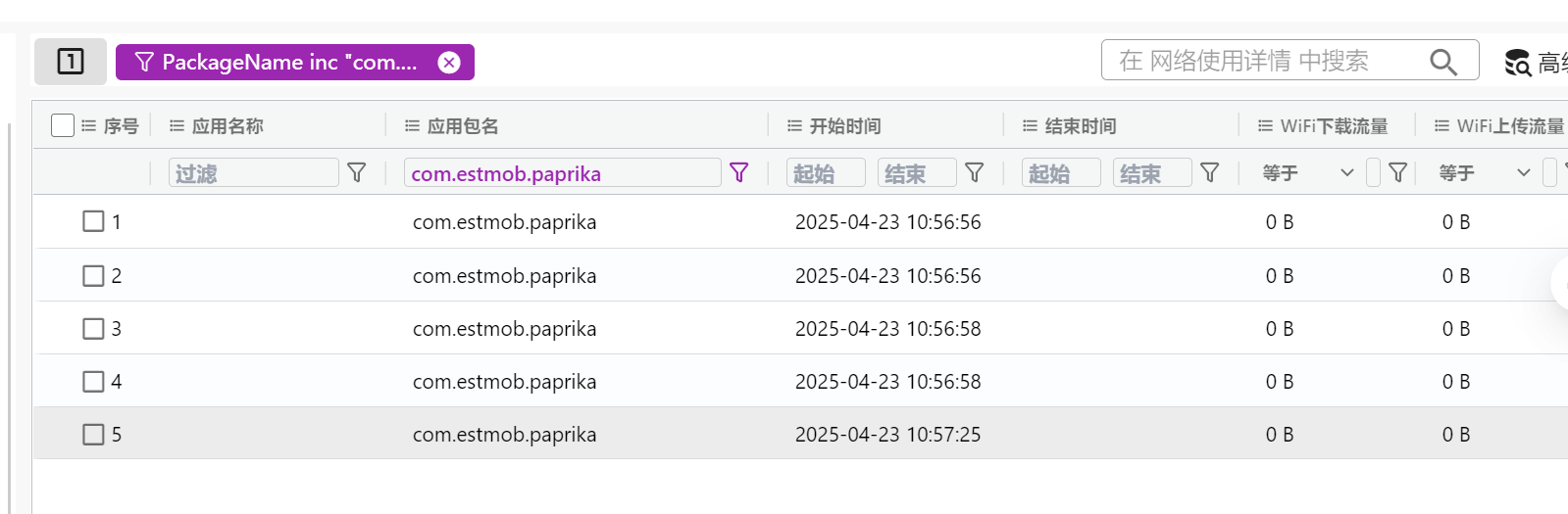 既然涉及到用来传送或接收文件,那么一定会使用网络,所以就在网络使用详情中检索这三个软件