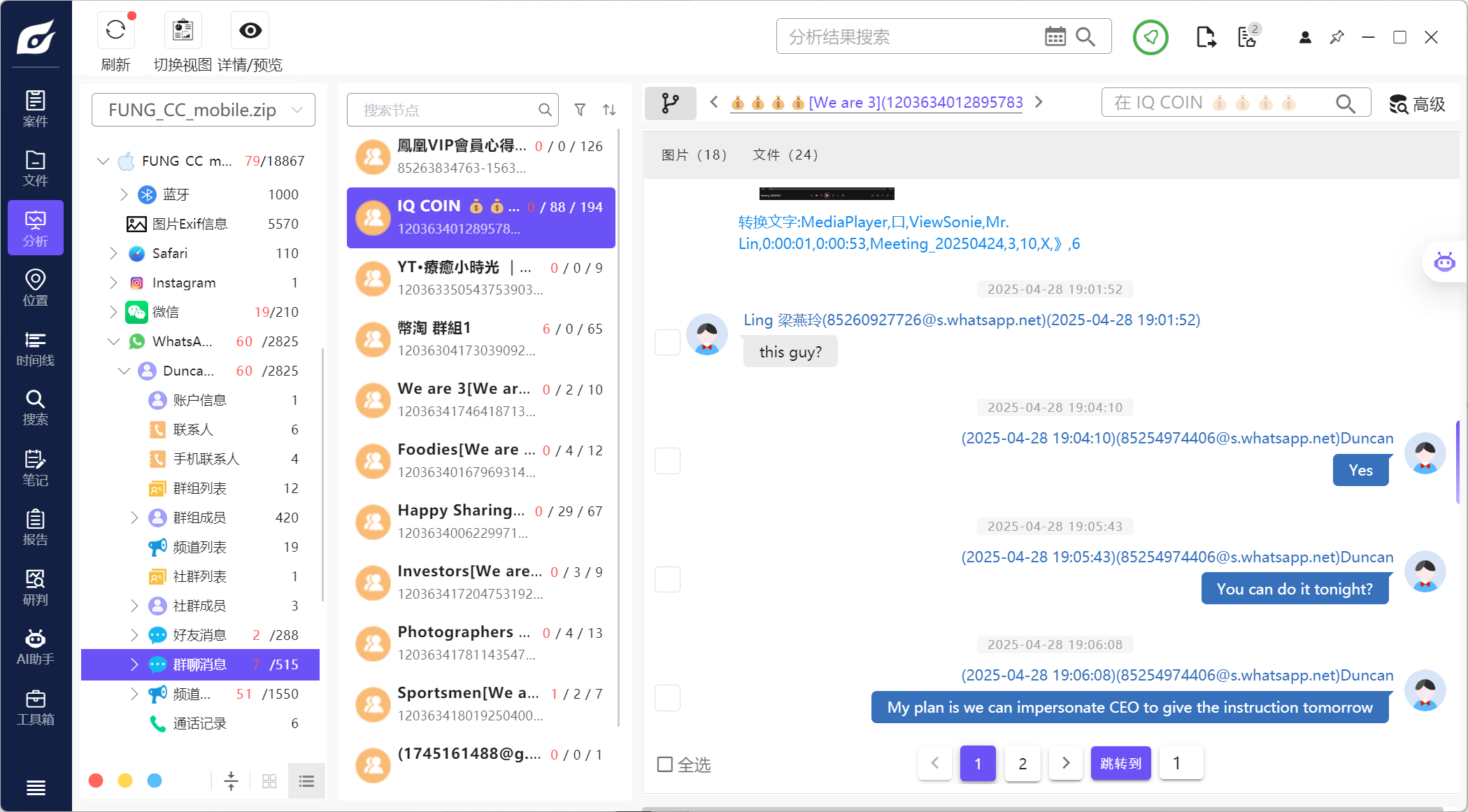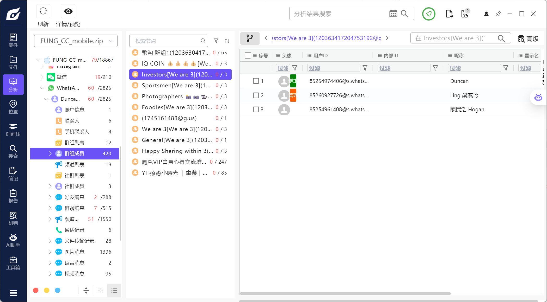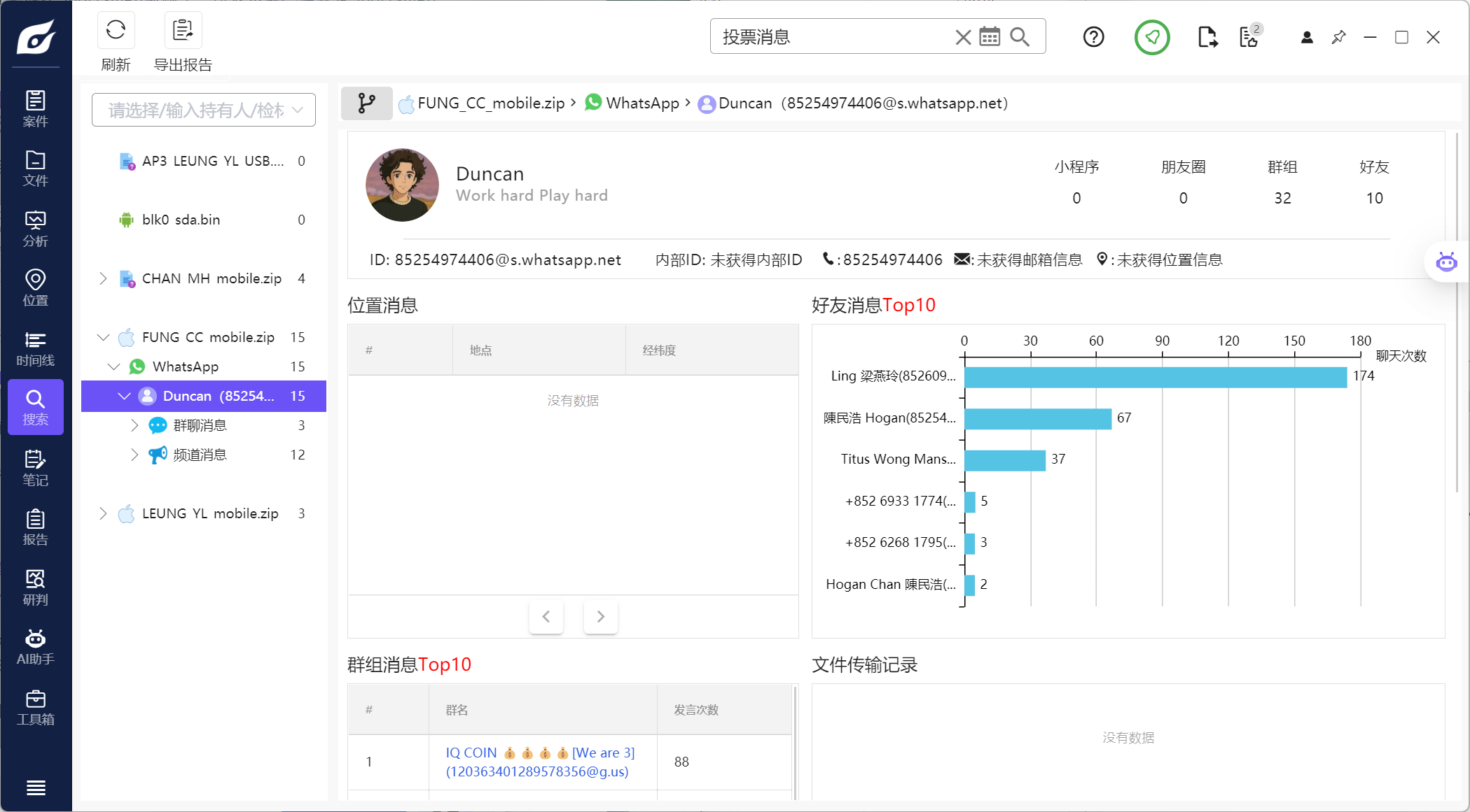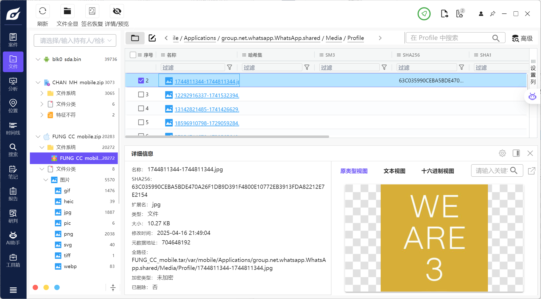 火眼里面可以直接看到微信和WhatsApp,QQ和WhatsApp Business没有显示出来,在其他应用中也没有,那大概率就没有安装