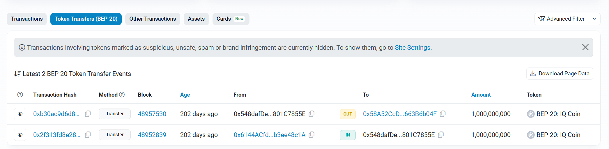 96.承上题,这项交易传送了多少BEP-20 IQ Coin?(请以阿拉伯数字依照参赛材料中的原文作答,注意区分大小写、空格及符号和不用标点符号 )